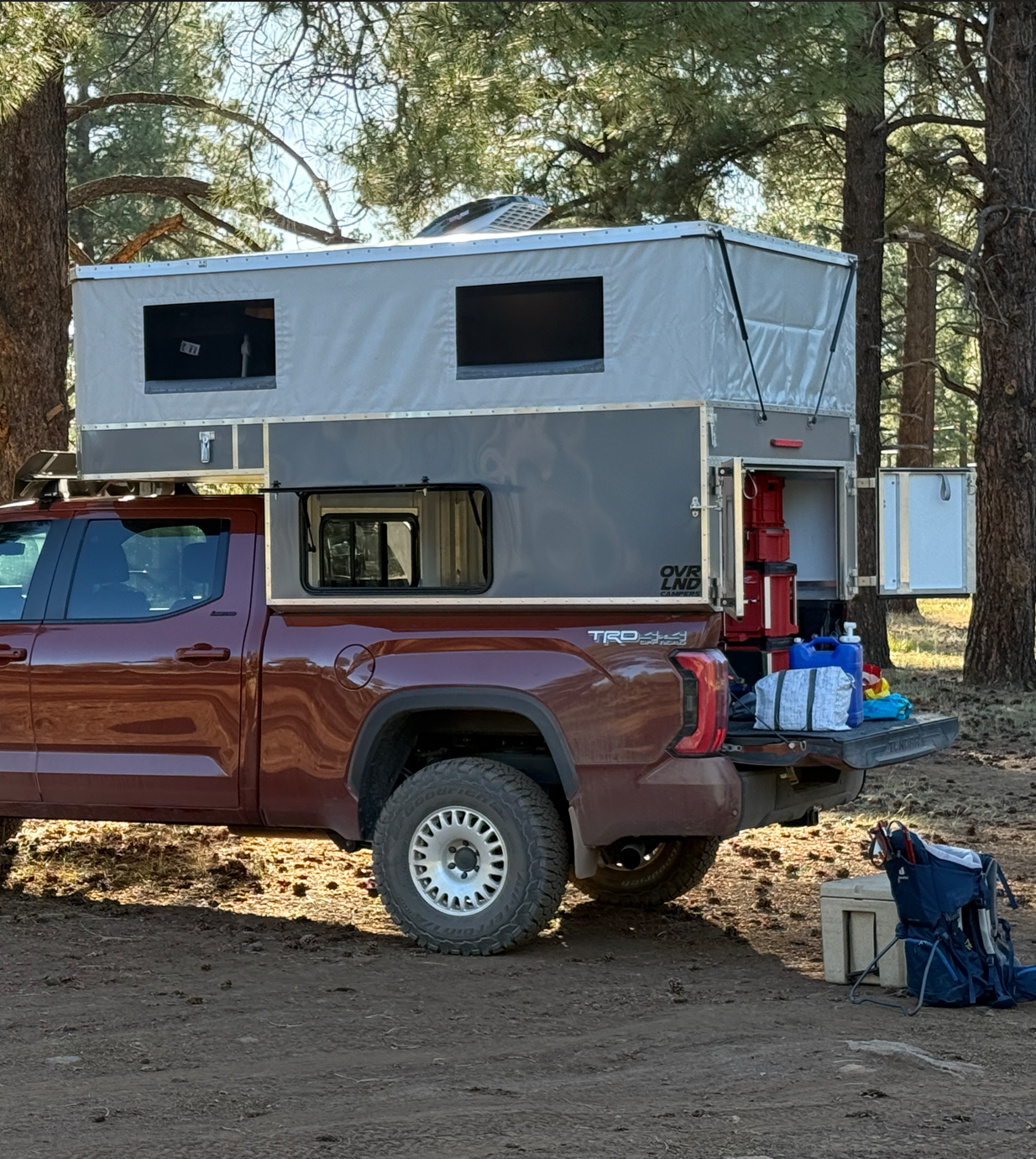 Our campers may be the lightest overall on the market! This immediately adds less wear and tear to your truck, makes handling significantly better, and impacts your MPG less. Built tough with hand-welded construction (like semi-trailers!), they will last as long as you camp. We also use as many non-proprietary parts as possible because your independence matters! These campers are fundamentally designed for repairability and DIY friendliness. If we were to close our doors or discontinue the model, you wouldn't be left searching for that one weird, super-special, company-specific part.