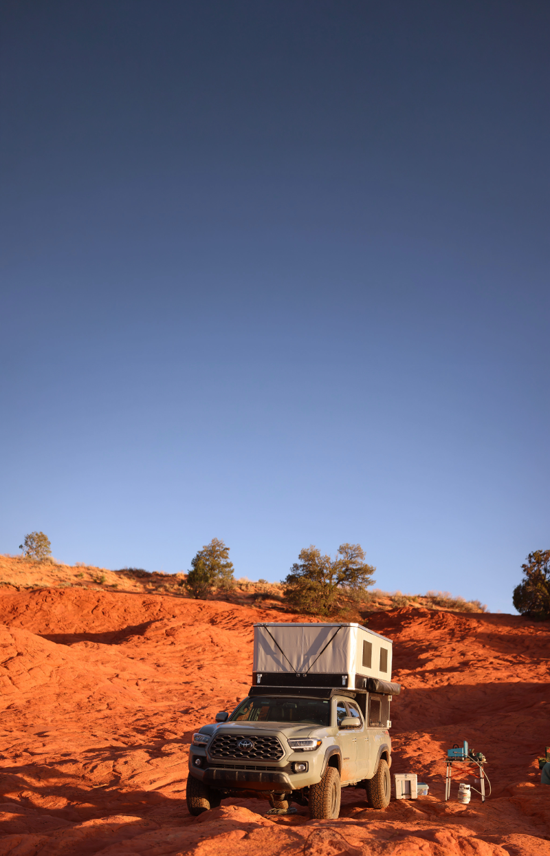 OVRLND delivers the proven quality and durability we are known for, engineered for years of flawless use by serious campers. We pioneered this style of straight-wall, straight-pop shell. We achieve enduring performance by mastering low weight, superior materials, extensive options, and lasting construction. To guarantee this standard, we source components (aluminum, canvas, gasketing) from US manufacturers, committing to building communities nationwide