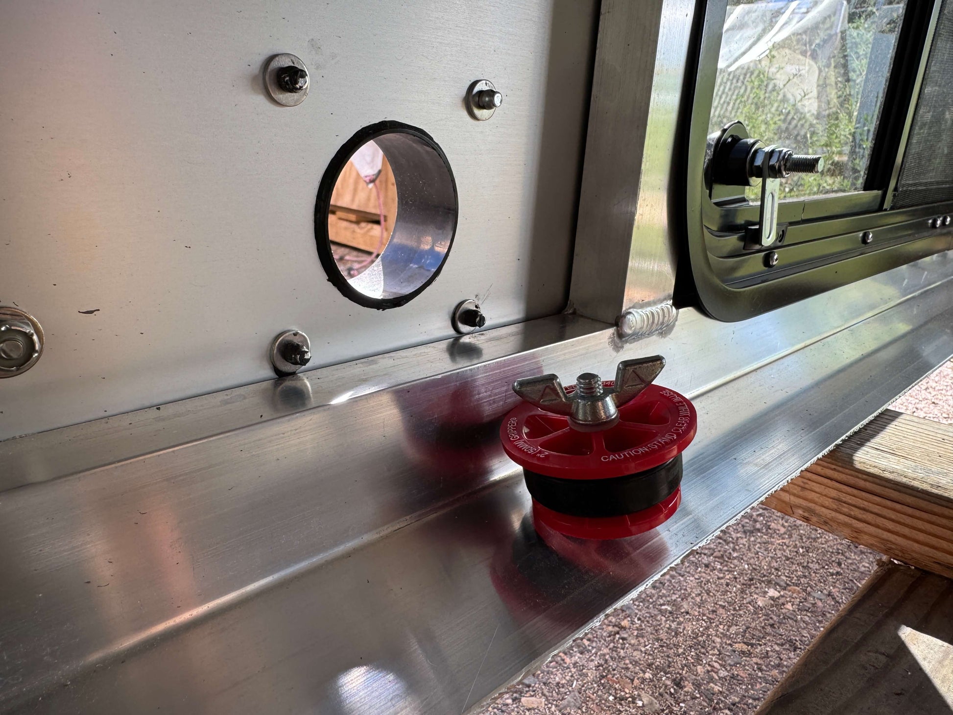 A weatherproof, pass-through port for an externally ran heater! Available in 2" (50mm) or 3" (75mm/76mm) sizes to accommodate most diesel and propane heater duct sizes. Comes with hardware to secure the port on your camper and a weatherproof plug to keep the elements out when not in use (plugs can be fitted from either the interior or exterior of the camper). Able to attach with either rivets or nuts/bolts because we know not everyone has a rivet puller on hand.